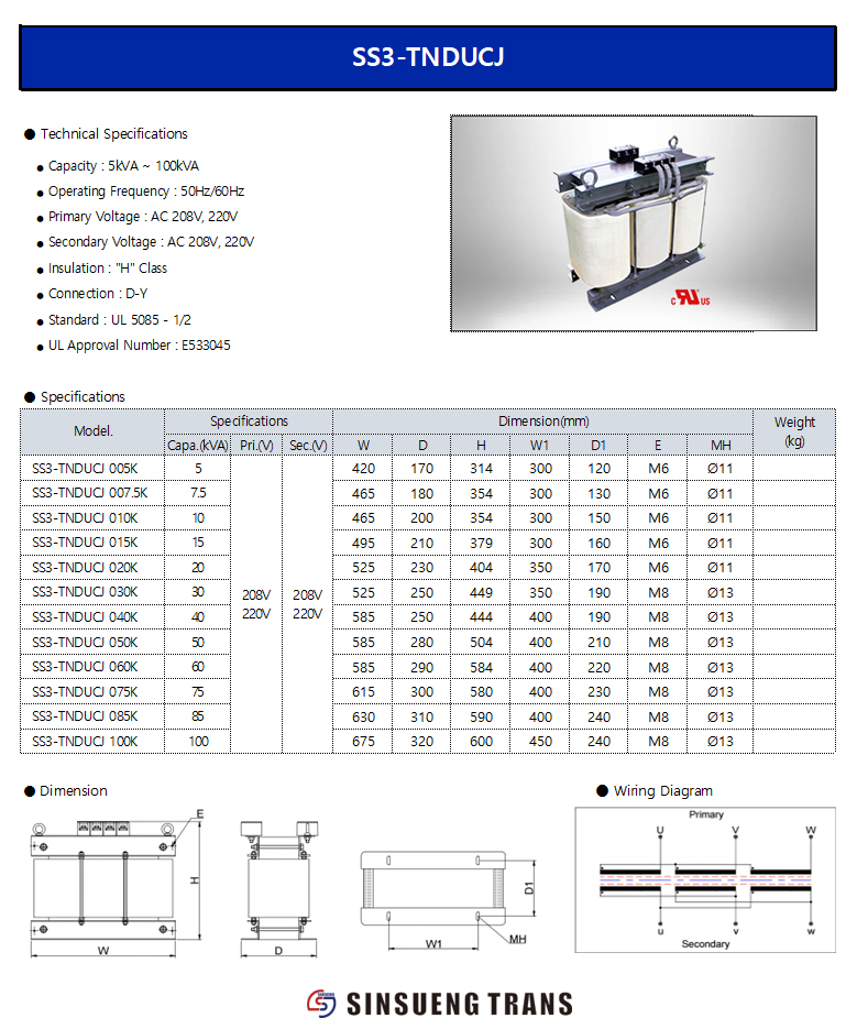 Secondary Voltage : 208V, 220V