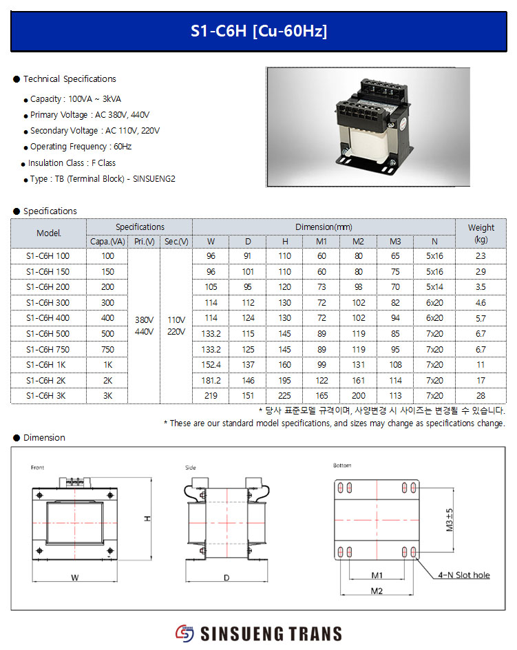 Capacity : 100VA ~ 3kVA