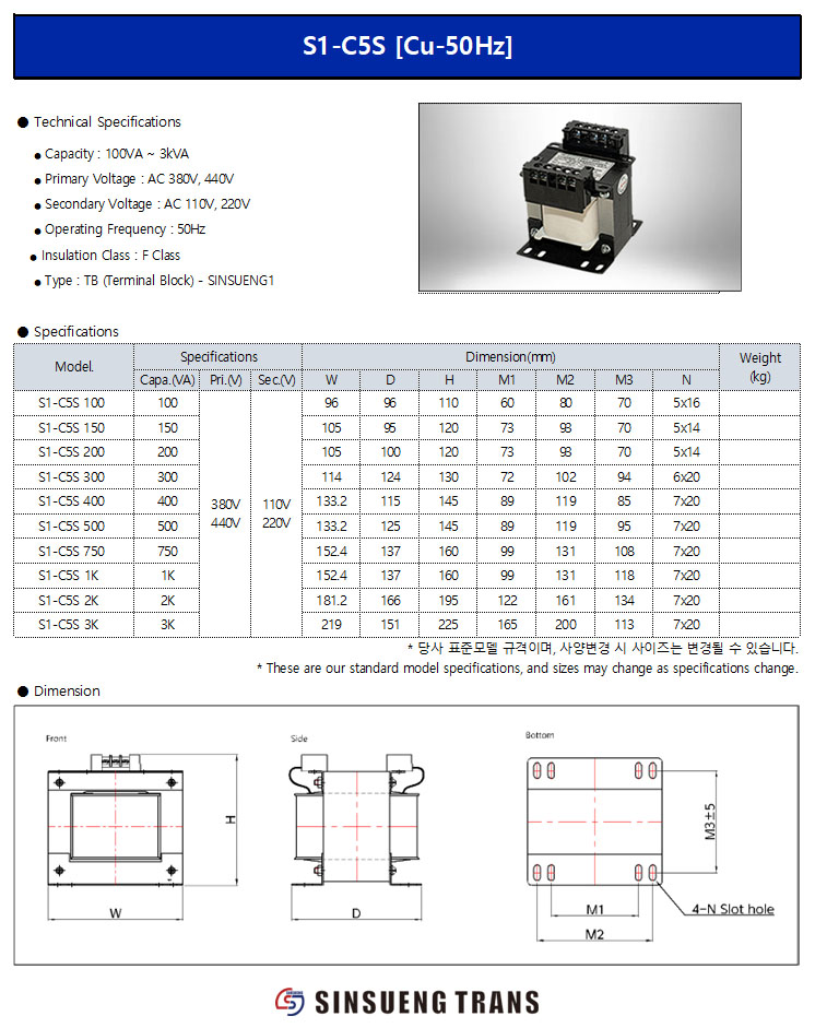 Capacity : 100VA ~ 3kVA Frequency : 50Hz Primary Voltage : 380V, 440V Secondary Voltage : 110V, 220V Class : F Type : Terminal Block